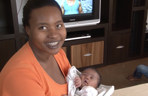 Banele lies in his mom’s arms. Nomusa talks to camera explaining some of the difficulty of the birth and her related anxiety. She also talks of her relief at having a son, her husband, Sizwe's first boy.