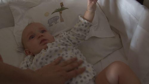 Mom has just gone back to work after the summer holidays (one or two days ago). It is late afternoon and Sofia has been bathed and dressed by Nomsa (not seen in this clip). The boys are talking to Nomsa from the bathroom “I want to get out” Luca says. Nomsa takes Sofia to the crib, telling her she must go and fetch Luca. Within a few moments of being left alone in the crib Sofia starts to cry, hands flailing in the air or holding her ears. She lies is in the cot while Nomsa is dressing the boys after bath time. Her crying is continuous, momentarily distracted by Nomsa giving her a dummy and saying “I know you like to be held. You like uppie-uppie”.